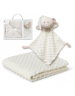 Set de manta bebé personalizada de 80x110 cm con dou dou y babero bordado con nombre, ideal como regalo para recién nacidos. Suave, práctico y único, perfecto para baby shower, nacimiento o bautizo.