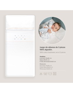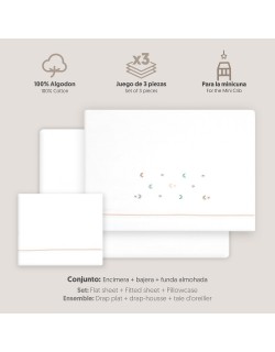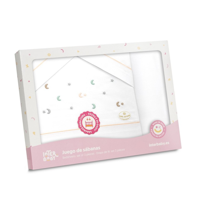 Juego de sábanas de INTERBABY para minicuna de 50 x 80 cm. Incluye las 3 piezas, sábana bajera, encimera y funda de almohada.