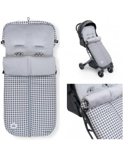 Saco Carro para silla de paseo con interior de coralina con apertura central y lateral.Lap parte trasera es antideslizante, con goma en los pies para sujetar a la silla y evitar desplazamientos.Es impermeable con goma ajustable a la espalda y protector en la zona de los pies para evitar las rozaduras de los zapatos.