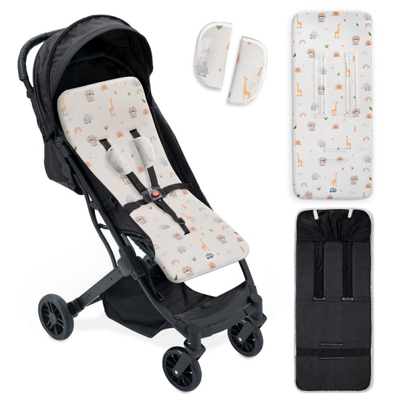 Mat tamanho standar adaptável à maioria dos carrinhos de bebê.